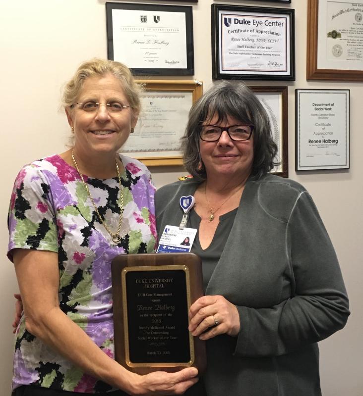 Renee Halberg, MSW, LCSW, a clinical social worker at Duke Eye Center, is this year's winner of the Brandy McDaniel Social Worker of the Year Award.